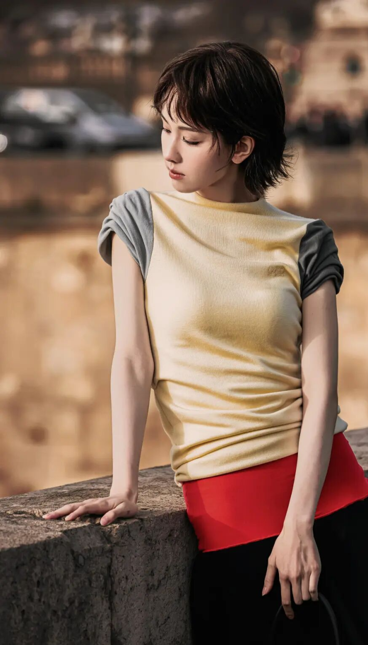 利落的超短发,配上黄灰拼色的上衣和红黑撞色的半裙,通盘这个词东谈主的情状齐变了。 有网友描绘得很妙,说她像“俏皮的泡芙密斯”——鬼马里还带着点高知气质,这两种嗅觉叠在沿路,或然地寥落。