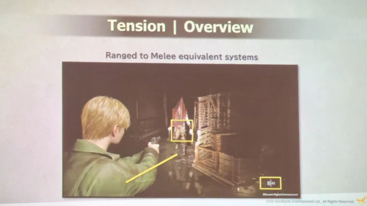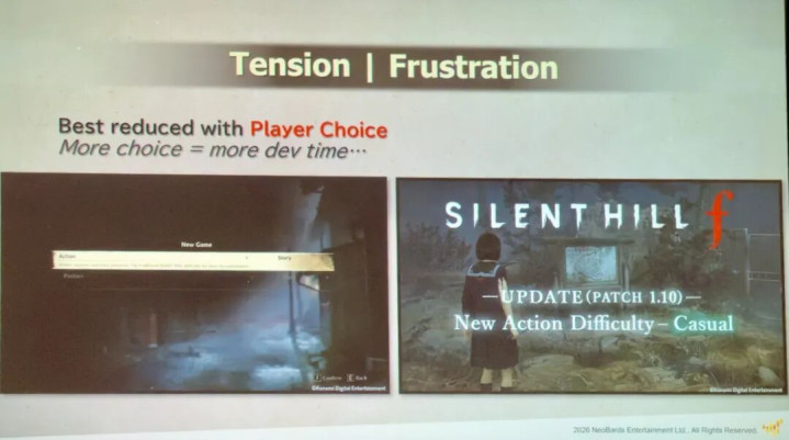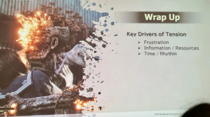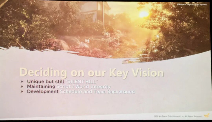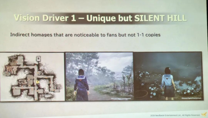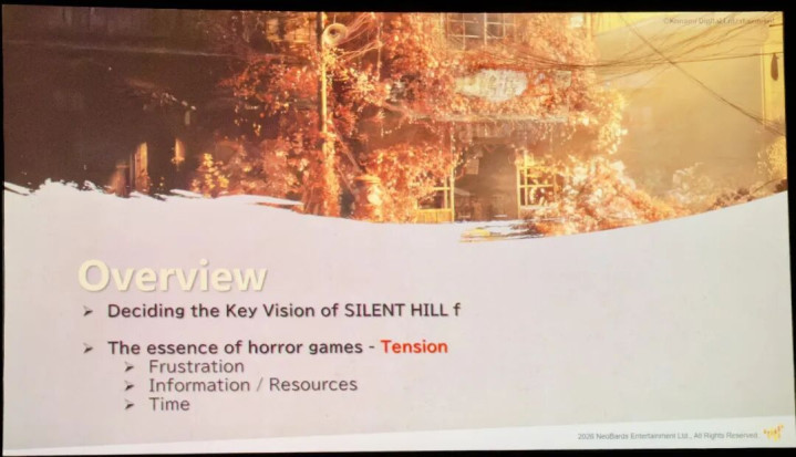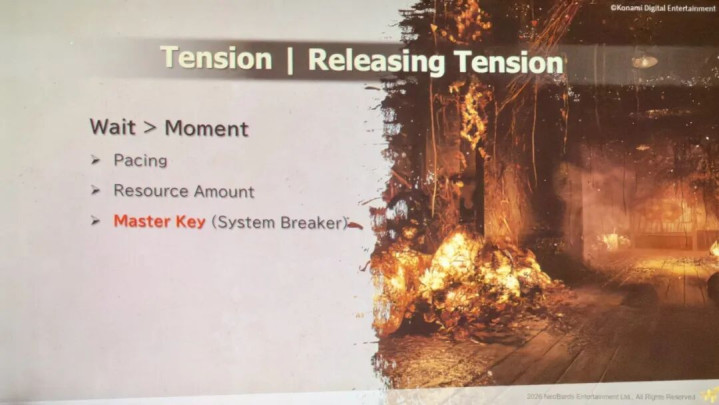 在玩过游戏后,不难发现本作的寥落之处:主角并不是传统真谛上的强力动作型变装,还只可拿一根水管防身,传统的辛苦火器致使全皆被取消了——她该何如在危急四伏的环境中生活?又为何遴荐这么策画? 在GDC2026的讲台上,《沉寂岭f》主创团队:来自Neobards Entertainment(泥巴文娱)的创意总监Al Yang(楊承圃),共享了题为“《沉寂岭f》:制作一款‘纯近战’恐怖游戏的挑战”的演讲。