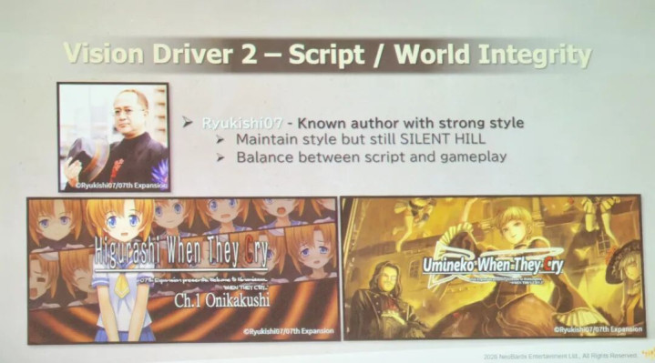 同期,咱们也很恬逸地请到了以创作《寒蝉鸣泣之时》而著明的“龙骑士07”担任编剧。