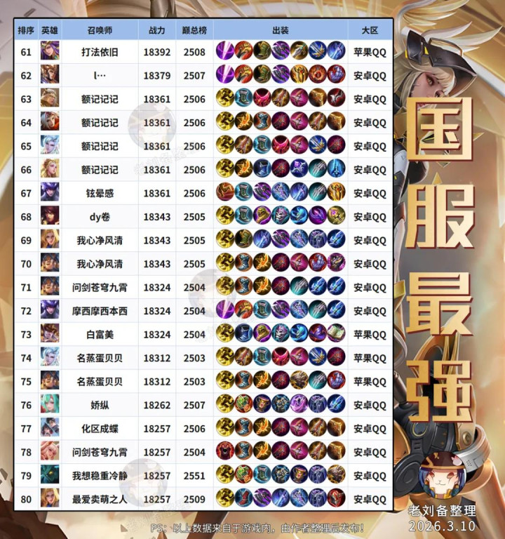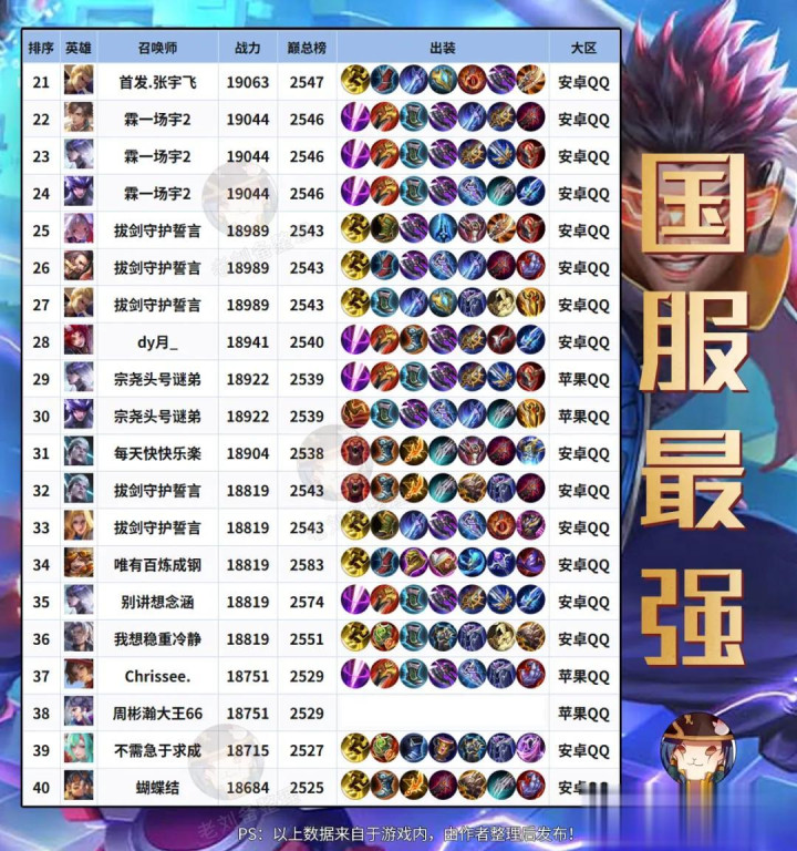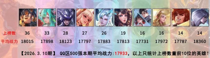 在了解前100前,咱们先来看下战力前500的枭雄上榜数据;在赛季终局,数目前10的基本照旧蚩奼、少司缘、马超级,而他们亦然目下尖端对局中,优先级最高的几位枭雄。 镜的数目固然相比靠后,但咱们看对等分,也曾来到了18360,可以说是目下平均战力最高的枭雄了,比蚩奼还要高出。