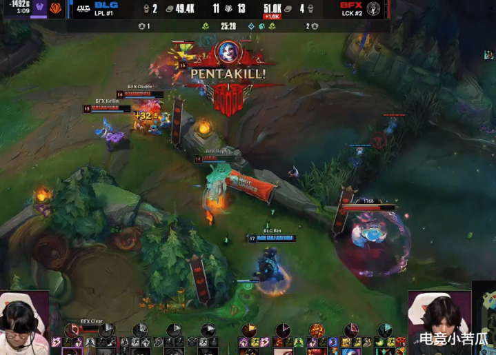 一上来第一把,Bin老迈就亮剑了,一手天秀兵器,平直伤害拉满,靠着豪华战绩亦然带队告捷,不得不说,Bin老迈的兵器确乎是绝活,联赛很少用,便是为了海外赛期凌LCK的,毕竟赛前齐放狠话了,BFX那处冒出来的,应该很好打。 Bin老迈第一把真的言出必行了,兵器单杀、团战画面拉满,归正第一把确乎打出了宇宙第一上单的嗅觉。除此以外,K皇也天秀,单杀对面两次,才几分钟啊,BFX战败了。