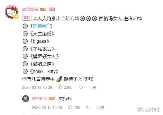 复兴上也全是“但愿最后地每个女变装齐能有凯蒂创作的变装曲。”这种。乐子东说念主居多。