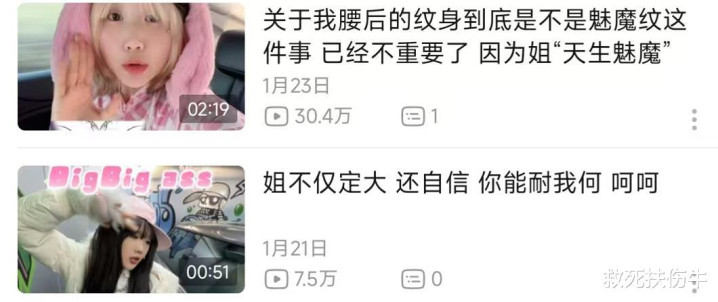 看她发的视频就知说念,走的是低俗综合赛说念,在全球圈子属于是全是负面标签的精神小妹。亦然得志总共刻板印象的典型rapper。