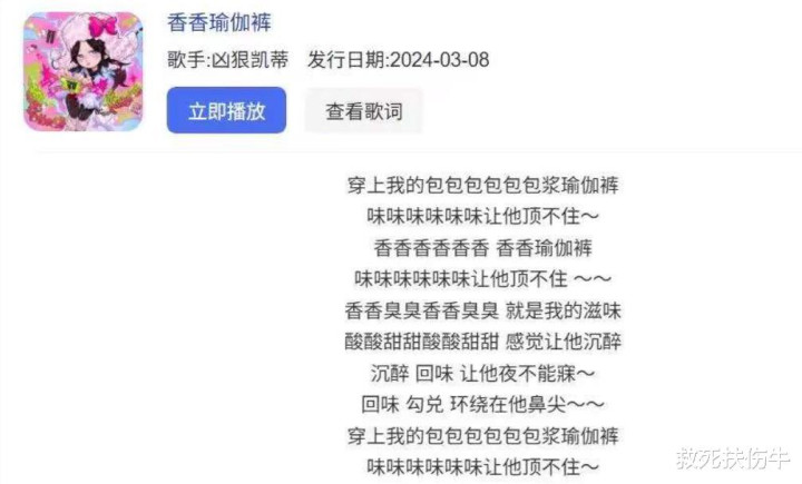 她的歌齐不如何持重,像新专辑的歌:《男德经》、《天生面膜》、《bigass》、《琴马级别》、《圭臬好女东说念主》、《赘婿之说念》、《hello!kitty》。歌词现实与二次元玩家心中精炼、好意思好的“纸片东说念主”寰宇十足方枘圆凿。 二游中枢粉丝圈层的文化特征是“审好意思紧密化、变装激情专属化、对低俗文化的摈斥”;而恣虐凯蒂所处的综合说唱圈层,中枢特征是“草根化、文娱化、无厘头”。二者的文化底层逻辑十足违反。 歌从邡,歌手不持重,最后地汤汤ep径直暴雷,鹰角官方上线5个小时就下架了,官方小号不说念歉,晓喻重制ep,时辰不决。