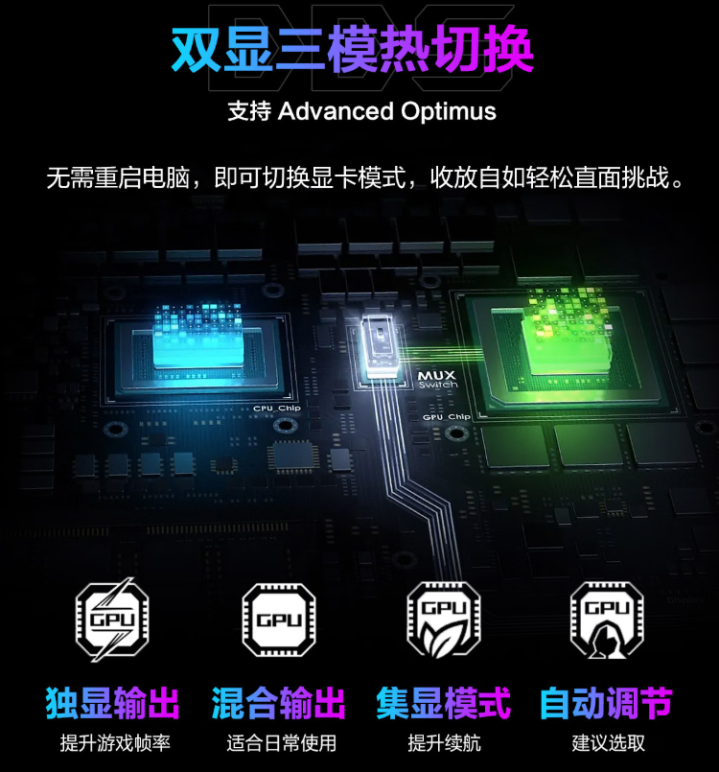 显卡方面,ROG魔霸新锐 锐龙版搭载可选配NVIDIA GeForce RTX 5070Ti札记本电脑GPU,基于Blackwell架构,140W满功耗,12GB GDDR7大显存,濒临各种复杂高负载场景,齐能沉着莽撞、褂讪输出。 同期撑捏DLSS 4 多帧生成时间,在不亏空画质的前提下,权臣提高游戏帧率。搭配双显三模紧迫换功能,可在独显直连、夹杂输出、集显格式间解放切换,兼顾性能与续航,闲居使用更纯真。